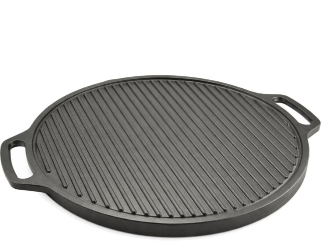 Plită grill cu 2 fețe, una grill și cealaltă netedă. Dimensiune de 30cm. Confecționată cu margine care previne scurgerea.